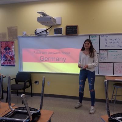 In der International Education Woche, welche ein wichtiger Teil des PPP ist, habe ich mehrere Präsentationen über Deutschland und die deutsche Kultur gehalten. Ich bin immer wieder erstaunt, dass die meisten Jugendlichen hier wirklich großes Interesse an der deutschen Kultur und Sprache zeigen, und ich liebe es, ihnen mehr darüber zu berichten, besonders gern in meinem International Club. Vor allem mag ich es mit Amerikanern deutsch zu üben, da es sich immer so süß anhört, wenn sie einen mit dem typisch amerikanischen Akzent fragen : „Wie gehts?“ :)